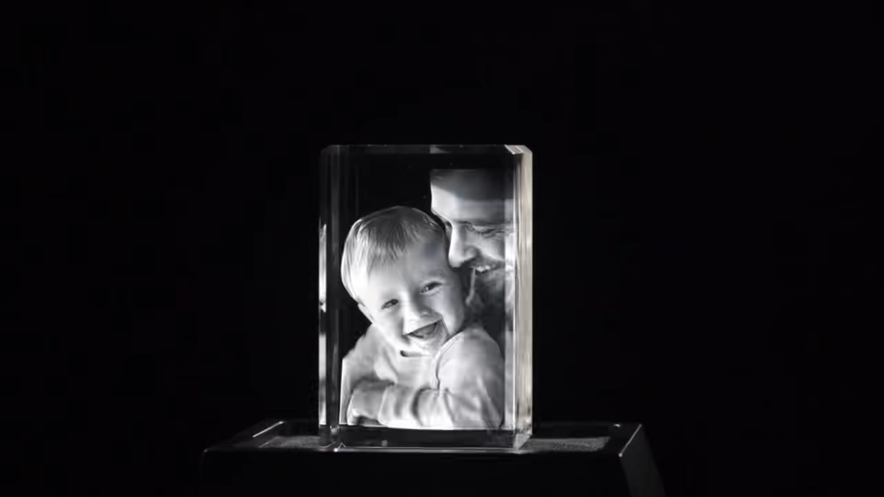 Elevate your space with the customizable 3D Crystal Rectangle. Crafted to beautifully capture male and pet likenesses, this premium crystal art adds a unique, personal touch to any decor, making it an ideal gift or commemorative piece.