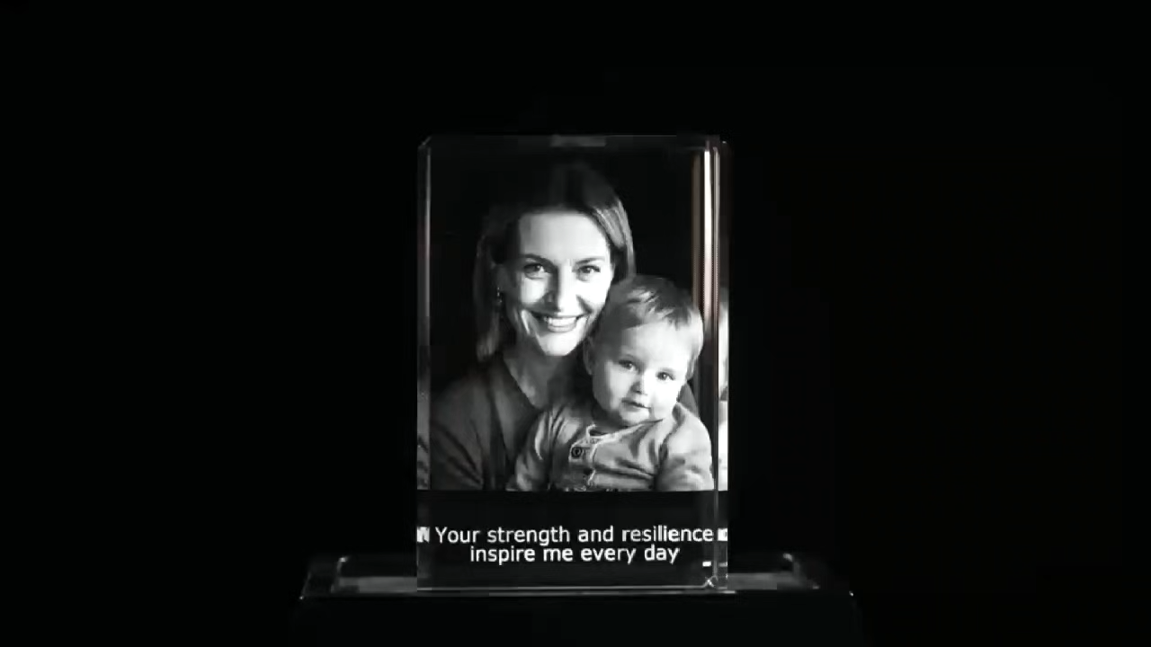 Celebrate special moments with a customizable 3D Crystal Rectangle featuring a female and child. Crafted from eco-friendly materials, it's perfect for gifting to family, friends, colleagues, or clients on holidays or anniversaries.
